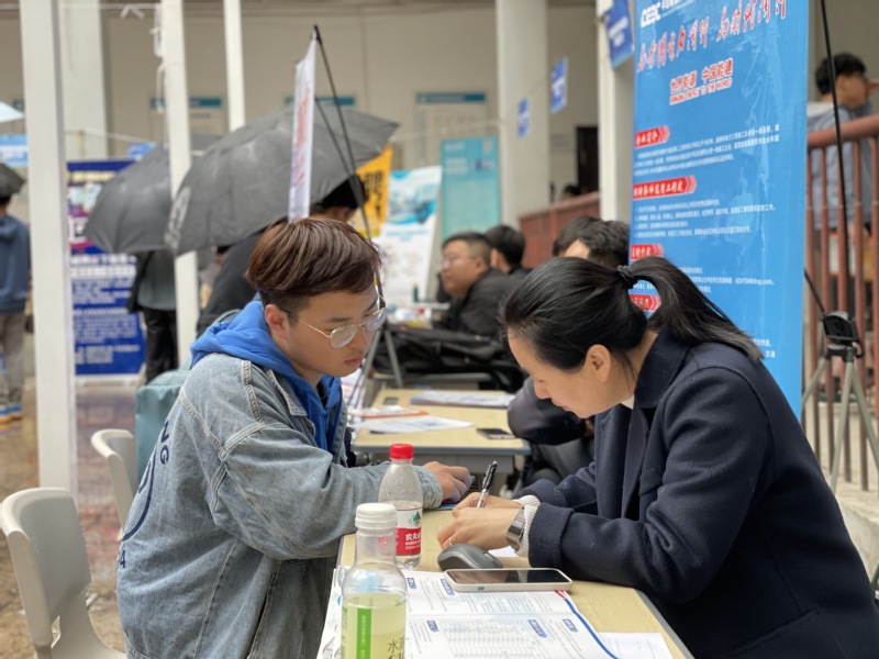 前来参加招聘会的不仅有2021届的应届毕业生,也有低年级员工提前前来了解感受招聘会氛围。毕业生李同学表示,“即使下雨,也阻挡不了自己求职的热情。因为只有通过现场咨询,才能明确自身适合什么岗位,可以选择什么具体职务,与职场要求还有多少差距。”