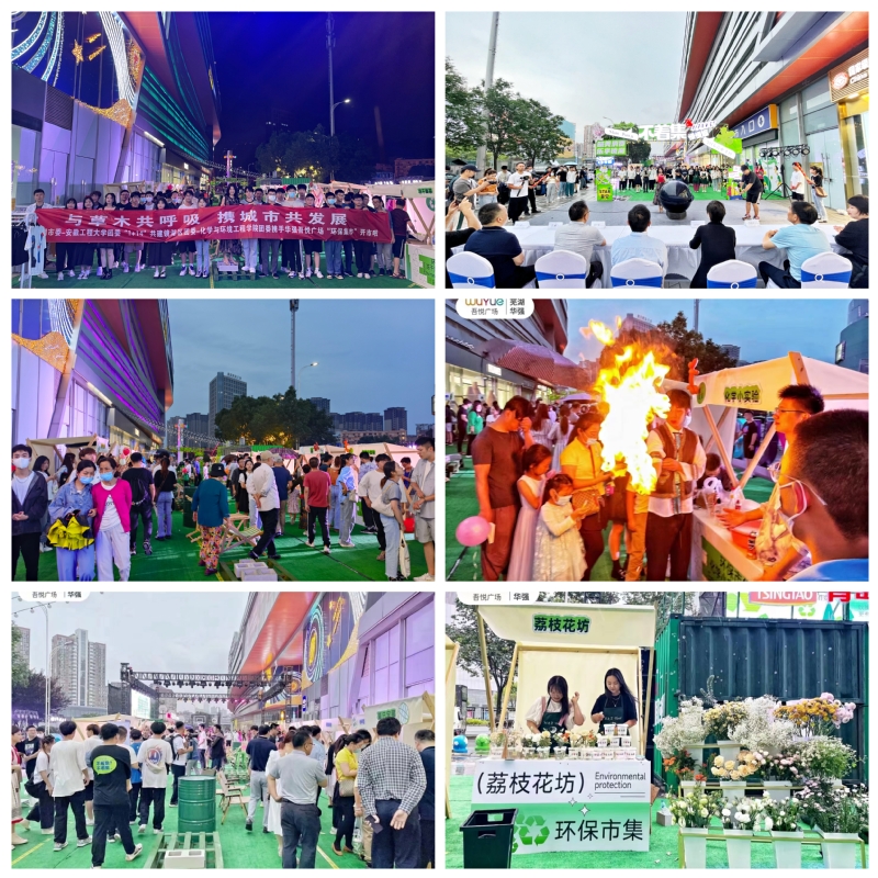 苏国红、曹锦平、钱彬彬、方婷共同为本次活动开启启动球,并一同参观环保集市,对公司师生、镜湖区团委组织展示的环保集市作品,以及创新的形式给予高度肯定。活动现场共设置了垃圾分类、实验室小产物、变废为宝、环保手工艺品、精酿啤酒、手绘T恤、荔枝花坊等18个摊位,创新创业、学科专业、环境保护等元素寓于其中,既是一场创新创业的活动,也是一次集中的环保理念宣传、特色专业展示,吸引了众多的市民、员工参与。集市现场人头攒动,来自公司不同专业的“小摊主们”各显本领,利用所学专业知识宣讲、展示、售卖,化学与环境工程公司带来的科学小实验《消失的水》《水中沙》《火焰掌》《小桔灯》《火山爆发》吸引大量人员参与体验。纺织服装公司精致的手工作品《绣“话”》引来众多人员围观。其中,手工艺品、变废为宝、泡泡机等小摊位也收到了可观的现场销售业绩。