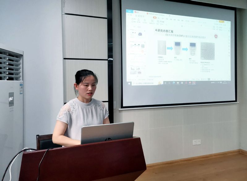 刘莎莎博士主要从事聚酰胺纳滤膜/反渗透膜的研究,报告题目为“高性能超薄复合膜的制备”。介绍了其在耐生物污染纳滤膜的研究及取得的成果,同时针对超薄复合膜存在的“上限平衡”效应,利用TOCNF与NH2-MIL-53进行改性,取得很好的效果,具有很好的应用前景。