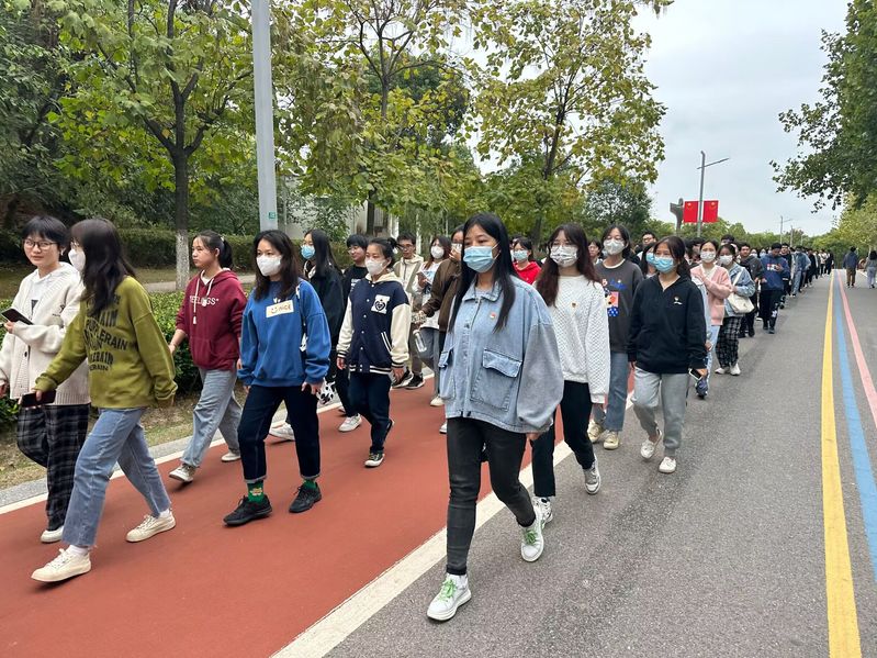 各员工党支部书记、新生辅导员带领全体员工党员、2022级新生齐聚雕塑公园南门,本次徒步走以雕塑公园南门为起点,徒步至芜湖市烈士陵园。随着一声“出发”号令,所有同学以青春昂扬的姿态开始了红色徒步走,徒步过程中,同学们精神抖擞,步伐矫健,欣赏着沿途美丽的风景,感受着宜人秋色带来的精神愉悦,充分展现了进取、无畏、开拓的青春风貌。