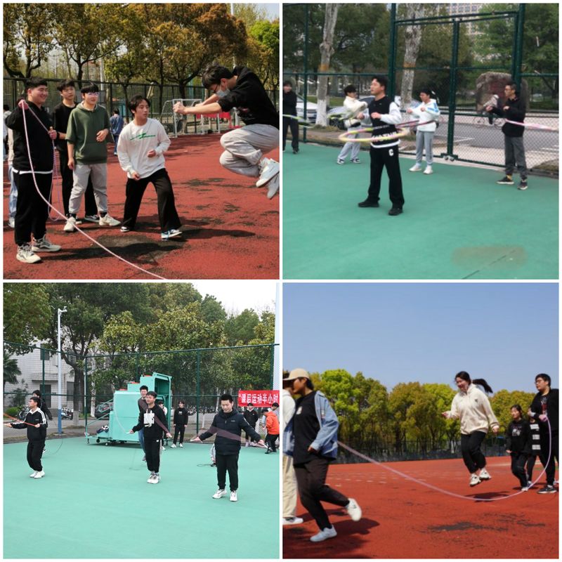 本次活动由“‘圈’力以赴 舞动青春”呼啦圈运动和“‘绳’采飞扬 跃动青春”跳绳运动两部分组成。同学们分组进行,相互配合、热情高涨。跳绳组同学们动作灵活,矫健身姿蹁若蝴蝶轻快,跃动的绳索婉如羚羊般溅越,脚尖与地面摩擦谱出动听乐章。呼啦圈组同学们灵活扭动腰肢,七彩的呼啦圈轻盈转动,如鱼儿水中畅游。五彩的跳绳、七彩的呼啦圈、一张张青春洋溢的面庞在绿茵场上绘成一幅律动的篇章。