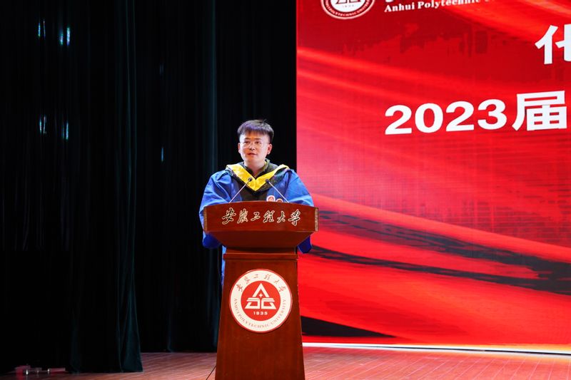 本科生员工代表丁宇杰发言,他诉说了对母校的赞美、对师友的感恩和自己不负青春时光的成长故事,将牢记公司领导老师的殷殷期盼和深深嘱托,胸怀大志、脚踏实地,负有责任、勇于担当,不畏艰险、追求卓越,彰显出徽程学子的智慧与拼搏。