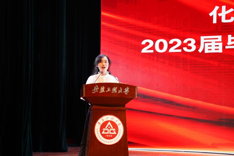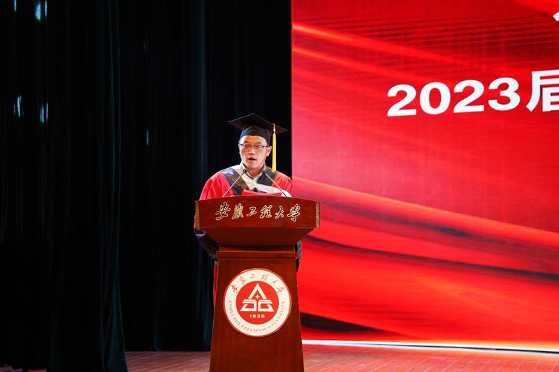 毕业班辅导员代表程秀仙发言。她回顾了与同学们一起度过的四年时光,感谢同学将最宝贵的青春年华留在了这里。大家用汗水浇灌自己的目标理想,用行动体现自己的使命担当,希望大家带着勤奋和勇气,带着责任和担当,彰显新时代的青年风采。