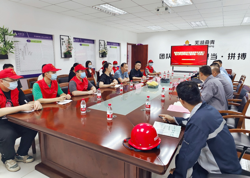 参观结束后,芜湖市生态环保综合行政执法支队工作人员、企业技术人员与同学们进行座谈交流。芜湖市生态环保综合行政执法支队工作人员向同学宣讲了环保政策,传达绿色生活理念,希望同学们在日常生活中不断提高环保意识。