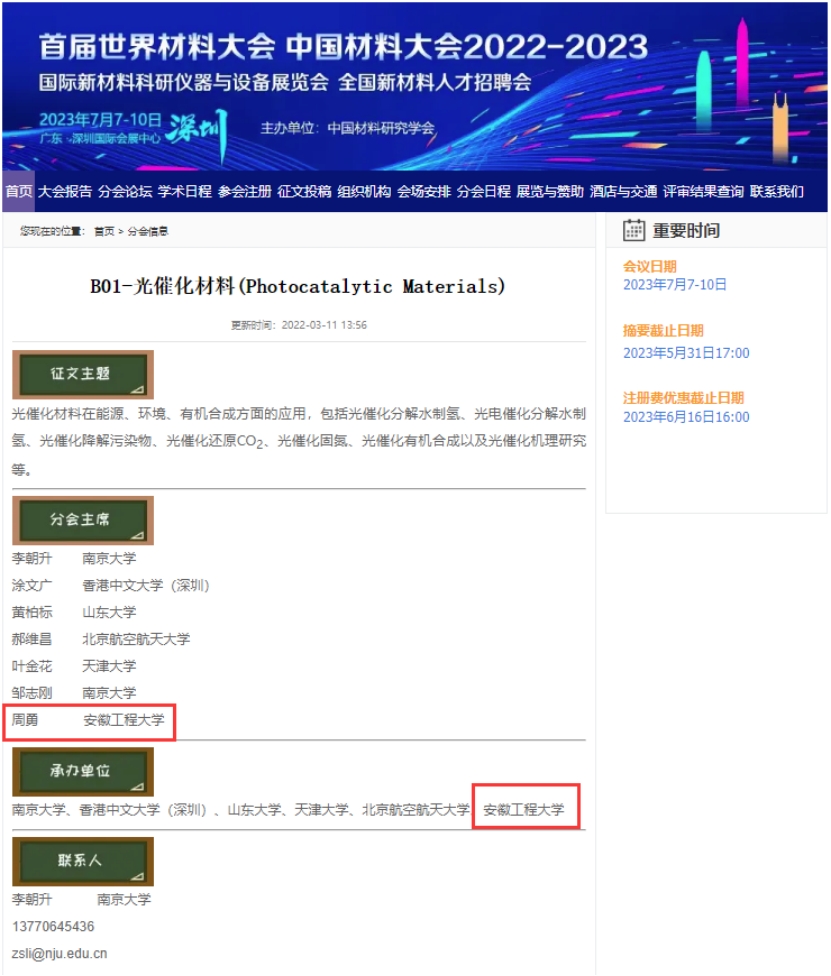 本届中国材料大会聚焦前沿新材料科学与技术,设置77个关键战略材料及相关领域分会场,1.9万余名材料科技工作者和企业代表、1500余位杰青长江学者、50余位两院院士出席了本次大会。公司bevitor伟德国际1946周勇教授担任光催化材料分会主席之一。光催化材料分会汇聚来自全国各地100多位相关领域的专家学者和行业人士,共同探讨光催化材料在太阳能水分解制氢、二氧化碳转化和环境净化等方面的最新研究进展和创新应用。周勇教授做了题为“原子层厚光催化材料表面缺陷构筑促进二氧化碳C-C偶联”邀请报告。蒯龙博士做了题为“单原子负载介孔金属氧化物的制备及应用”的口头报告。伟德国际1946bv此次成功作为承办光催化材料分会单位之一,是对公司宣传的一次很好契机,提升了公司在国内学术交流方面的影响力。