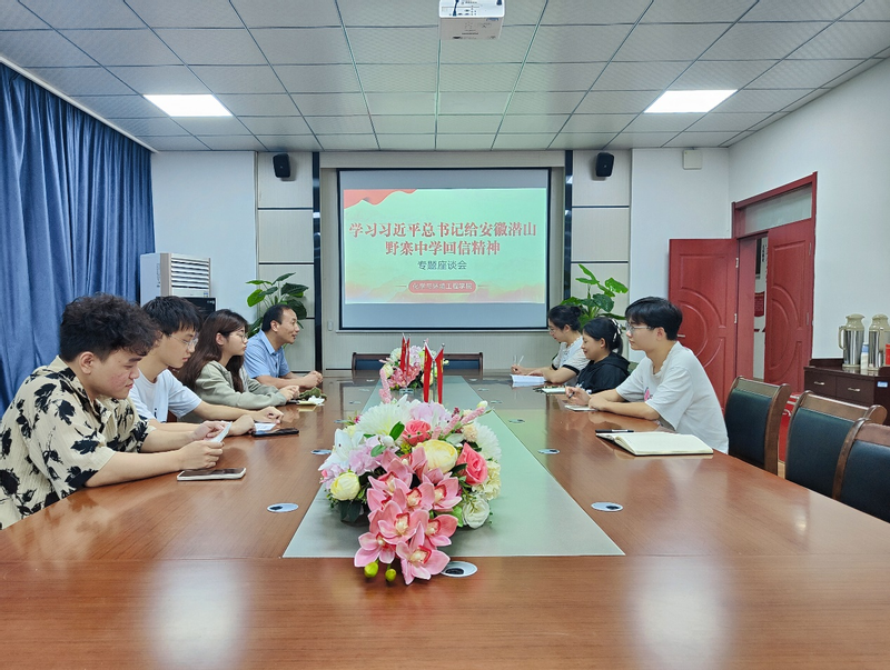 座谈会上,辅导员王冰冰老师首先领学了习近平总书记给安徽潜山野寨中学回信的内容,随后参会各专业员工代表畅谈了个人学习感受。刚刚毕业于野寨中学应化231班冯若琪同学介绍了野寨中学的历史,公司位于大别山革命老区,依陵建校,以校护陵,陵校同建共存,凝练成“景忠成人”的校训。冯若琪表示在野寨中学读书的三年时间中,通过参与一系列主题讲座与社团活动,坚定了她拼搏奋斗,立志报国的决心,在未来的老员工活中她仍将继承发扬艰苦奋斗的精神,努力学好专业知识,开阔眼界锻炼本领,希望在大学毕业后能参军入伍携笔从戎,献身国防,为祖国建设贡献个人力量。来自化工222班夏星表示自己很荣幸以野寨学子身份参加座谈,看到总书记给母校报考军校的学子的回信,自己倍感振奋。在母校野寨中学,抗日英烈长眠于此,他们的事迹深深地激励着自己,要做一个对国家有贡献的人,时刻提醒着我们应该谨记历史,要懂得“勿忘国耻,吾辈自强”的道理,继承先烈们的意志,努力学习,刻苦钻研,努力成长为堪当民族复兴大任的时代新人。