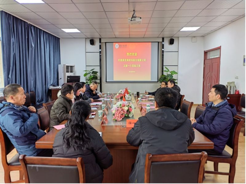 张伟对安徽美佳新材料股份有限公司一行的到来表示热烈欢迎,并详细介绍了公司的发展历程、团队力量、科研水平、学科专业特色、人才培养模式、人才招聘等情况,充分肯定了双方前期合作成果,对未来双方深化产学研合作提出建设性意见。