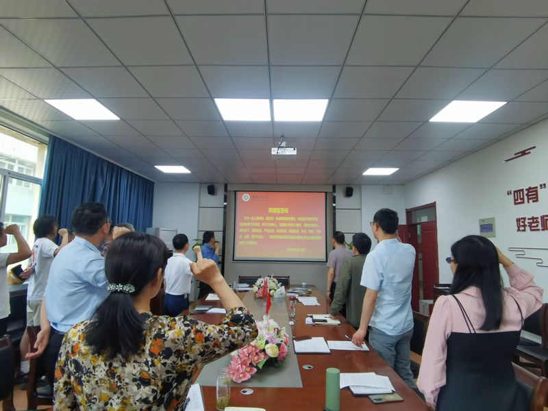 胡承功领学了警示教育案例。随后,张伟带领全体教师进行了师德师风集体宣誓,并签订师德师风、廉洁自律、安全稳定承诺书。
