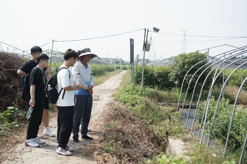 宣讲结束后,团队一行赴紫约农业科技有限公司,于蓝莓种植基地展开进一步调研。在村民的带领下,成员们对农作物的生长情况进行了仔细观察,针对不同的作物品种,从合理施肥、病虫害防治等方面,为村民们提供了科学的种植建议。