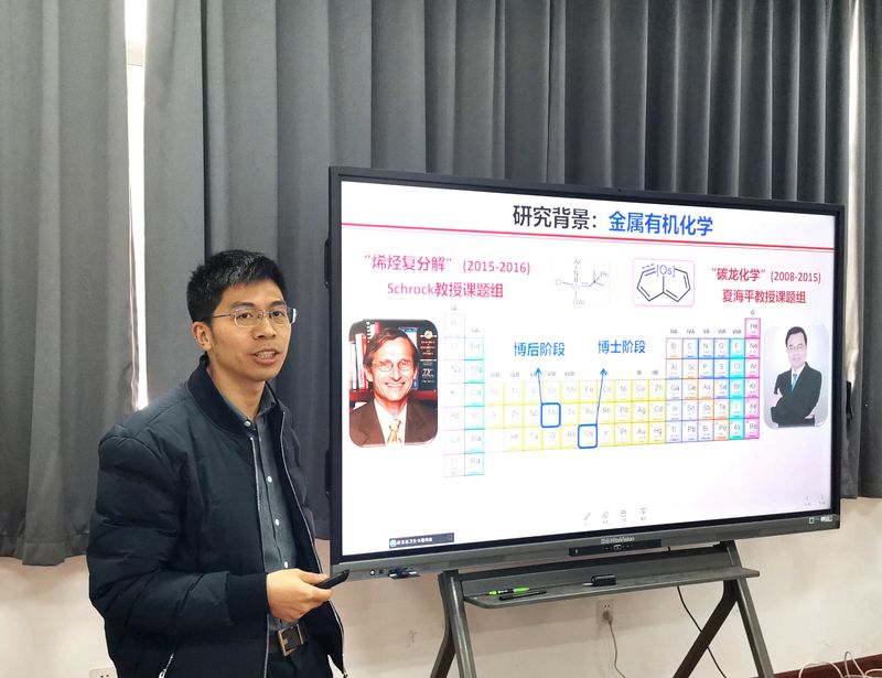 朱从青教授做了题为“锕系金属-金属键化学”的学术报告。他从自身求学经历介绍其个人及其团队在金属有机化学、锕系金属配位化学、小分子活化转化领域的研究工作,详细介绍了他针对f区锕系金属参与的金属-金属键研究受限于合成方法少、产物稳定性差、难以表征等因素而发展缓慢的问题,在基于软硬酸碱理论上,设计了一类新型“双层N-P配体”,成功构筑一系列铀-过渡金属单、双、三键配合物,并对它们的反应性及性能进行了系统研究,并取得了一系列研究成果。