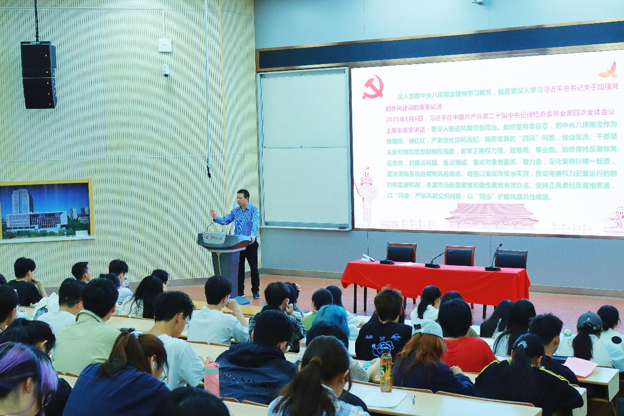章兵围绕“学习的意义”“什么是中央八项规定及其实施细则”“如何学习”三个方面讲专题党课。他指出,中央八项规定是新时代全面从严治党的重要抓手,是党永葆先进性和纯洁性的有力保障。他详细解读了中央八项规定及其实施细则的具体内容,强调了其在改进工作作风、密切联系群众、加强党风廉政建设等方面的重要作用。他结合实际案例,深入剖析了违反中央八项规定精神的典型案例,警示学员们要时刻保持警醒,自觉抵制各种不正之风。