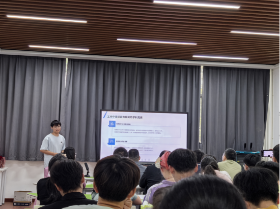 校智能控制协会会长、电气工程公司(集成电路公司)汪夏磊同学以“西门子杯”中国智能制造挑战赛为例,从对参与学科竞赛的必要性、选择、成长和收获等方面与大家分享了参赛的成功经验,一方面拓宽了同学们的视野,熟悉了参赛的路径,另一方面也让同学们认识到不同专业跨学科交叉竞赛更容易获取成功。