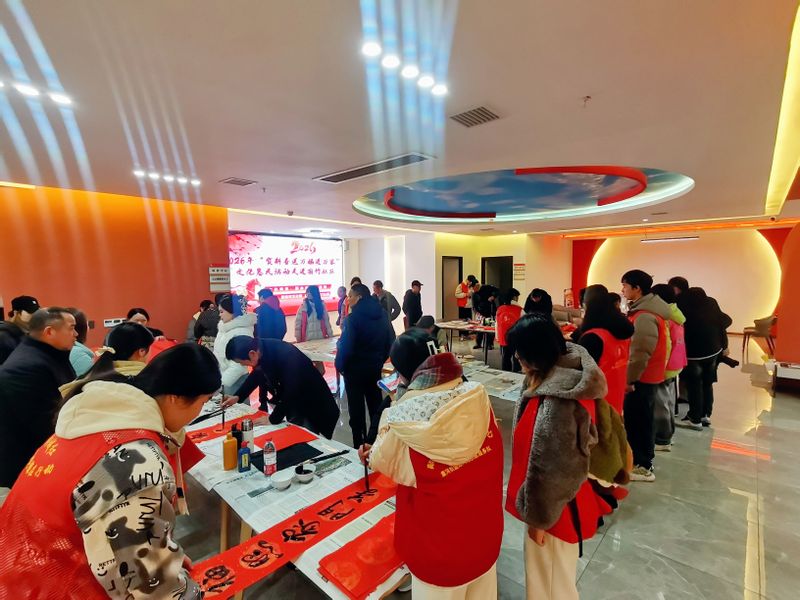 在丽竹社区的组织安排下,胡奕轩同学与其他返乡老员工志愿者一同参与了多场迎新春志愿服务活动。1月26日,社区联合新余市文化馆开展“贺新春送万福进万家”活动,他早早来到现场,协助书法老师铺纸研墨,并将一副副寓意吉祥的春联送到居民手中,传递浓浓年味。