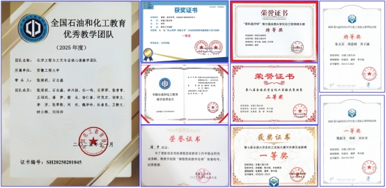 经过多年的建设,《化工原理Ⅰ》课程思政精品课程(示范课)取得了丰硕的成果(图2)。课程教学团队获评全国石油和化工教育优秀教学团队,主讲教师获评校级课程思政教学名师、教坛新秀。同时,课程教学团队基于课程建设经验获得省级及以上教学竞赛奖项4项,员工基于课程学习内容获得省级及以上学科竞赛奖项10余项。