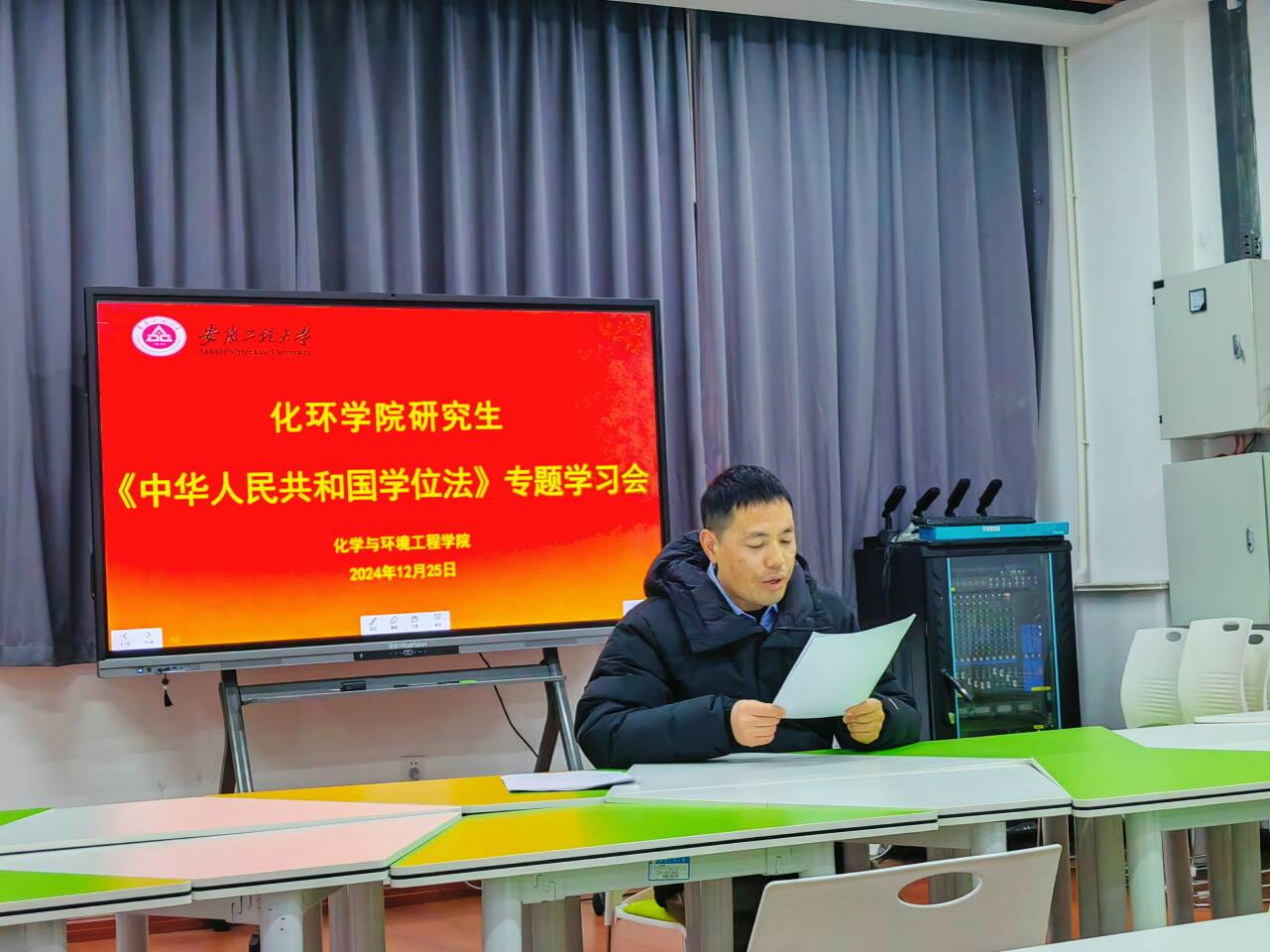 为深入贯彻落实学位相关法律法规,强化师生的学位意识和法律观念,bevitor伟德国际1946于12月25日组织开展了《中华人民共和国学位法》专题学习活动。公司副经理徐大勇出席并担任领学人,全院研究生共同参与此次学习。